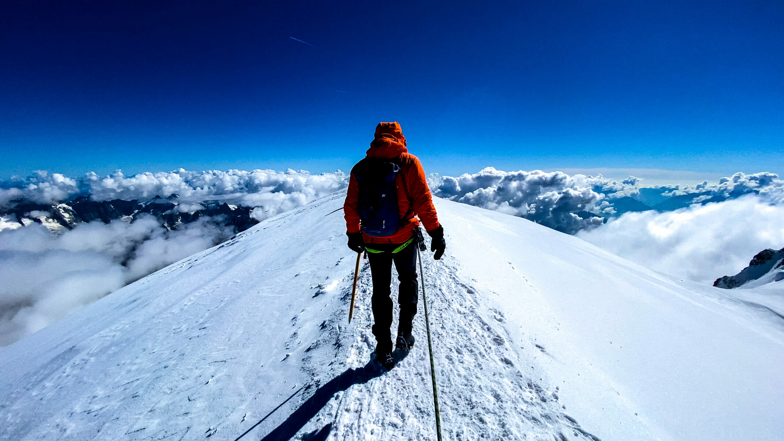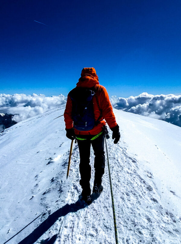 The last section follows a narrow ridge leading to the broad summit of Mont Blanc (4,810 m), the highest peak in Western Europe. At the top, we take time to celebrate, capture the moment, and enjoy the incredible views across the Alps.