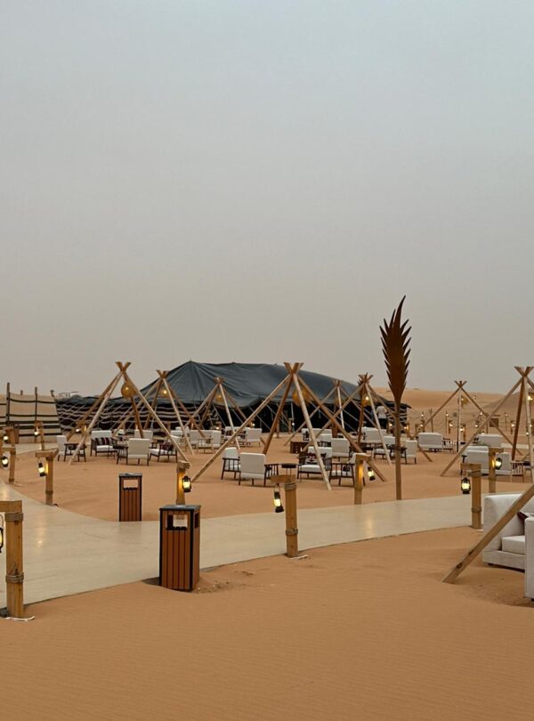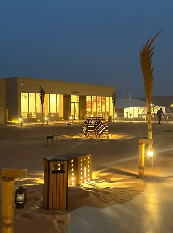 After a scenic sand hike and a moment of sunset meditation, we will gather around the crackling campfire. Enjoy the serene atmosphere in a luxurious outdoor setting, complemented by the warmth of Saudi coffee and tea.
