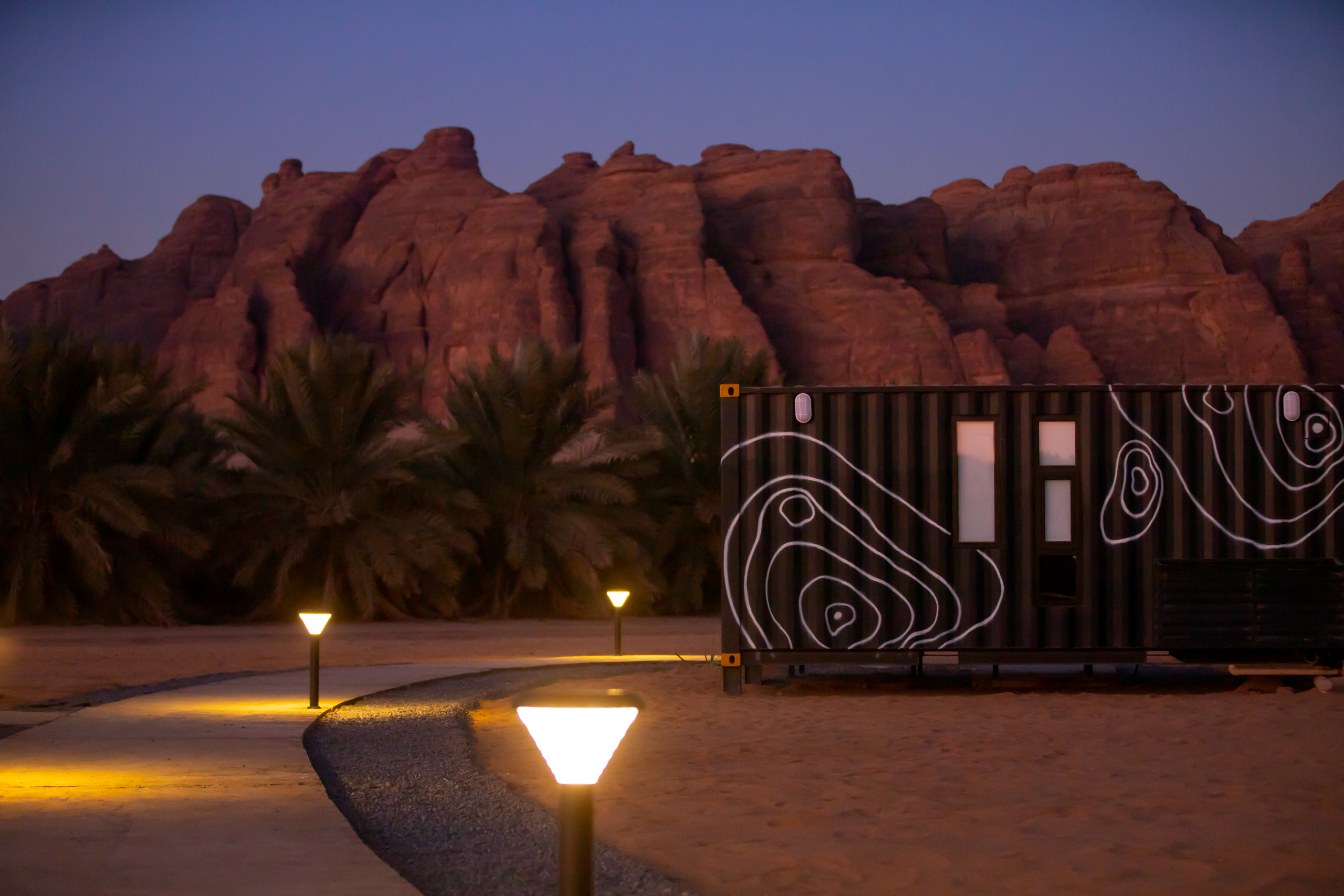 Pangaea’s private cabins offer visitors to AlUla the opportunity to stay at PANGAEA Center and experience comfortable accommodations surrounded by the tranquility of nature. The cabins feature a modern and elegant design and are equipped with all modern amenities, including a private bathroom and air conditioning. The center is home to numerous varieties of palm trees, and guests can also enjoy breathtaking views of the Sharaan Nature Reserve.